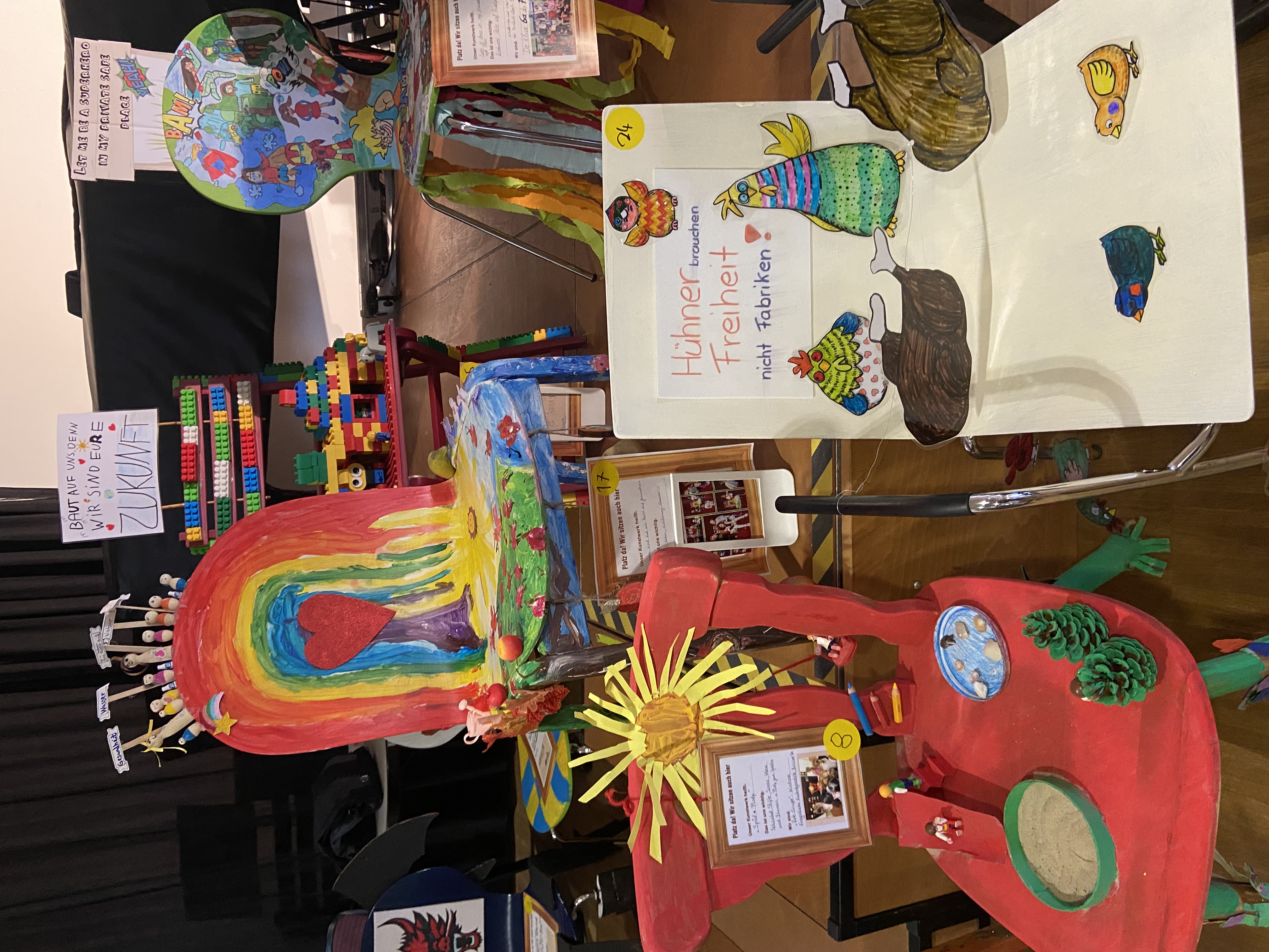 Insgesamt sind von Kita's bis zu Klasse 7 in den Schulen 50 Stühle gestaltet worden. Die Ideen und Ausführungen zeugen von großer Kreativität der Kinder!